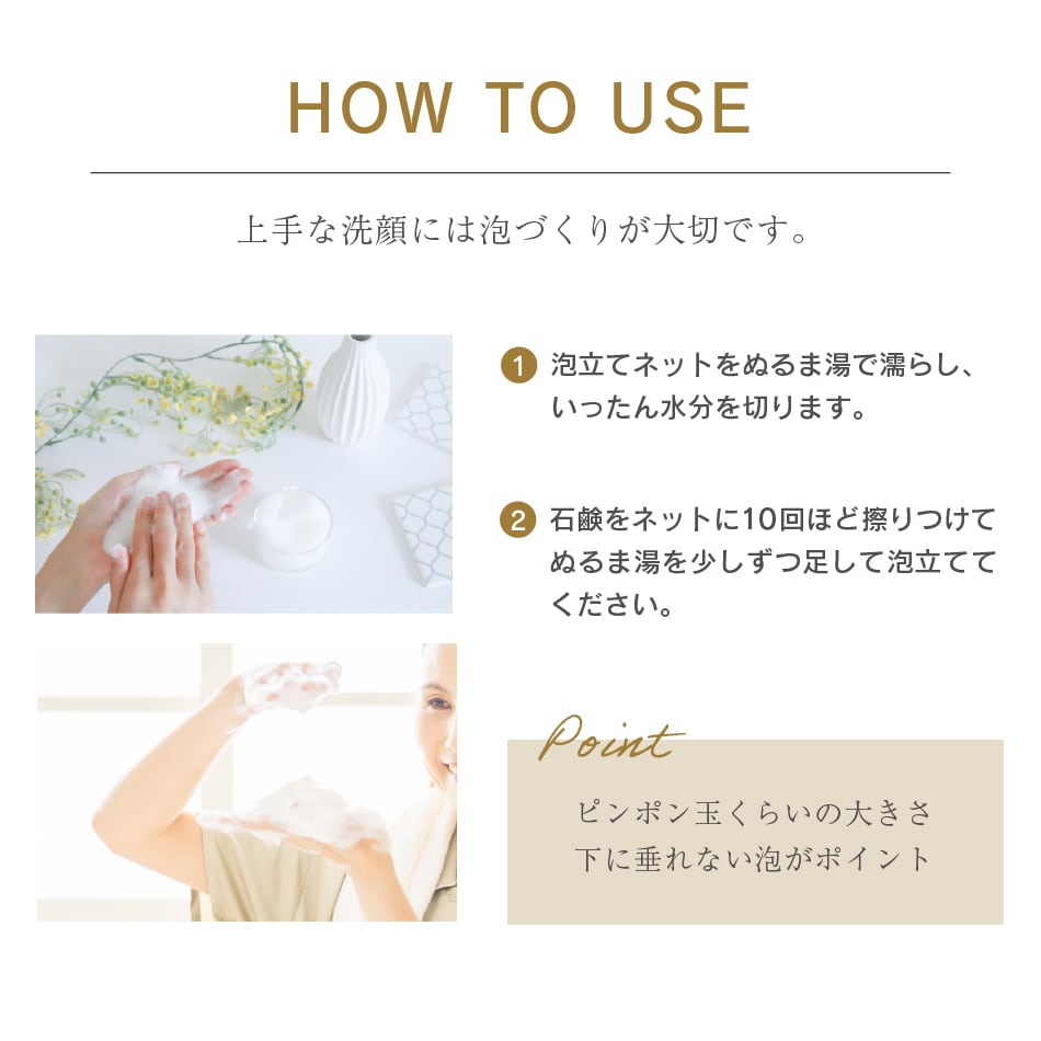 一日の汚れをしっかり手放す、夜の洗顔です。
